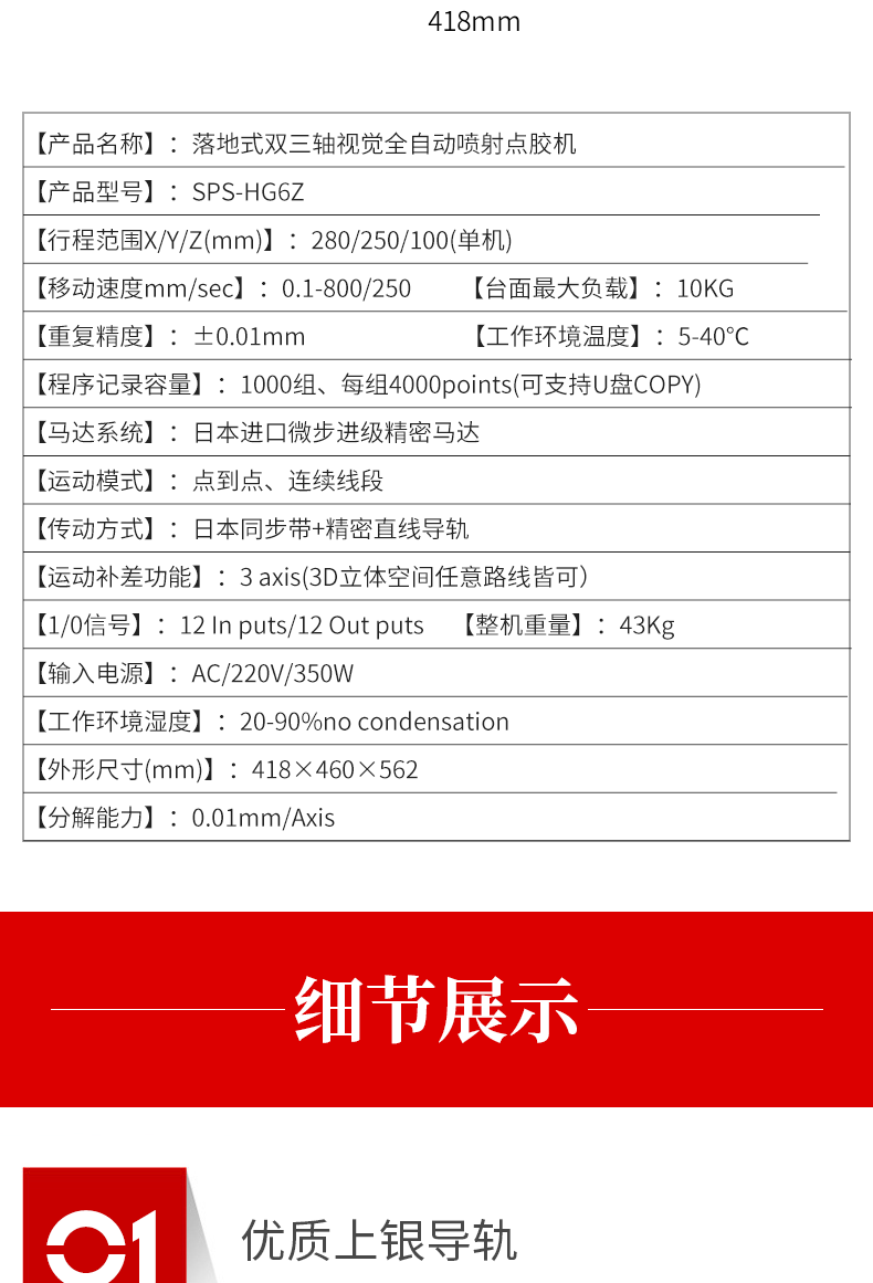 雙三軸落地式視覺點膠機SPS-HG6Z